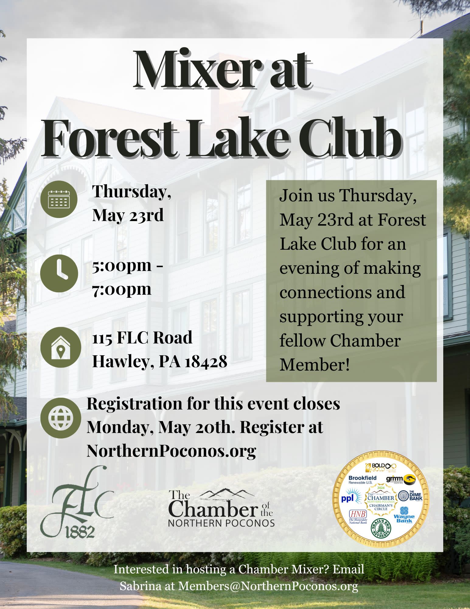 Join us Thursday, May 23rd at Forest Lake Club for an evening of making connections and supporting your fellow Chamber Member!
